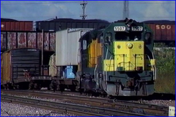 A CNW F7 led inspection train in fresh paint contrasts with a beater, chopnose GP9. The year of 1986 has merged Soo/ Milwaukee. The Burlington Northern triple track line into the city is dubbed ‘ the racetrack’. Fast freights, Amtrak, and commuters in push pull service. Many more locations. Joliet is featured to close.