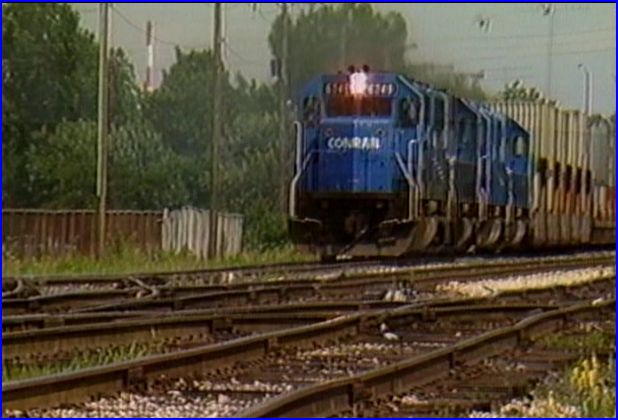 Hammond’s Homan Ave. Tower hosts Norfolk Southern and Conrail. A pair of NS GE C-40-8 , runs long hood foward, snakes it’s train through tight clearances. Corwith Yard has the locos, some rare, at yard limit speeds.