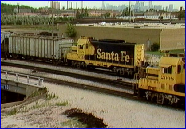 At Blue Island, a Grand Trunk freight , horn blaring roars across the screen.