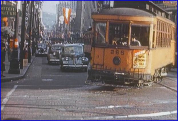 We move onto diesels and find this is 1970’s era – not the 60’s, as advertised. The billboard lettering gives that away. It’s all good, the footage is compelling, given the scenic area. Renton has street running, before and after, the wires came down.
