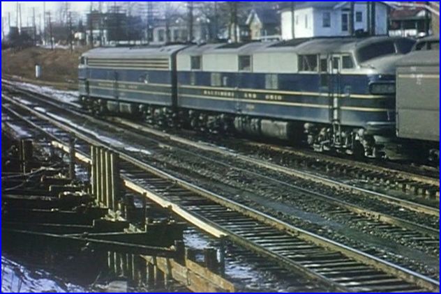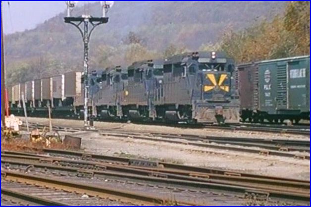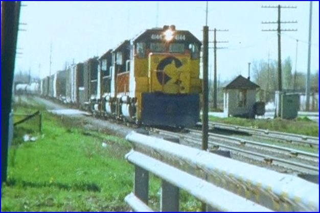 Chessie System 4144 arrives with a freight at Riverdale along with 2 B&O painted units. That GP40 is a real eye opener after 20 odd years of viewing blues.