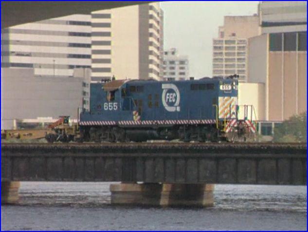 FEC is 365 miles long, and we’ll travel the entire line. Jacksonville to Miami. A map illustrates the route. We begin our journey at Jacksonville and the CSX yard. Bowden Yard is the FEC facility and we see GP9 switching.
