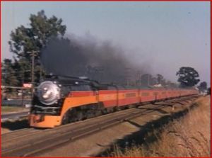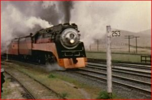 Various SP steam engines are viewed: with some doubleheaders, and helpers on grades. Traditional black locomotives are present. Colorful GS-class Daylights are the main locomotives seen in this show. This is a passenger train oriented presentation.