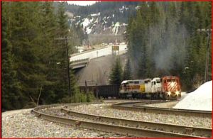 The spiral tunnels are a very unique feature. CP Rail mid train helpers, with radio control are found here. The trains can be seen, looping over themselves.