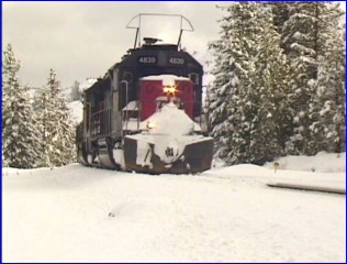 The modern operations are a highlight of this wonderful program. Awesome views of the flanger train demonstrate the speed and volume of snow encountered. Both Southern Pacific and Union Pacific locomotives pull the flanger. John Kuehl describes old wooden flangers that he rode and more. This conductor began in 1963.