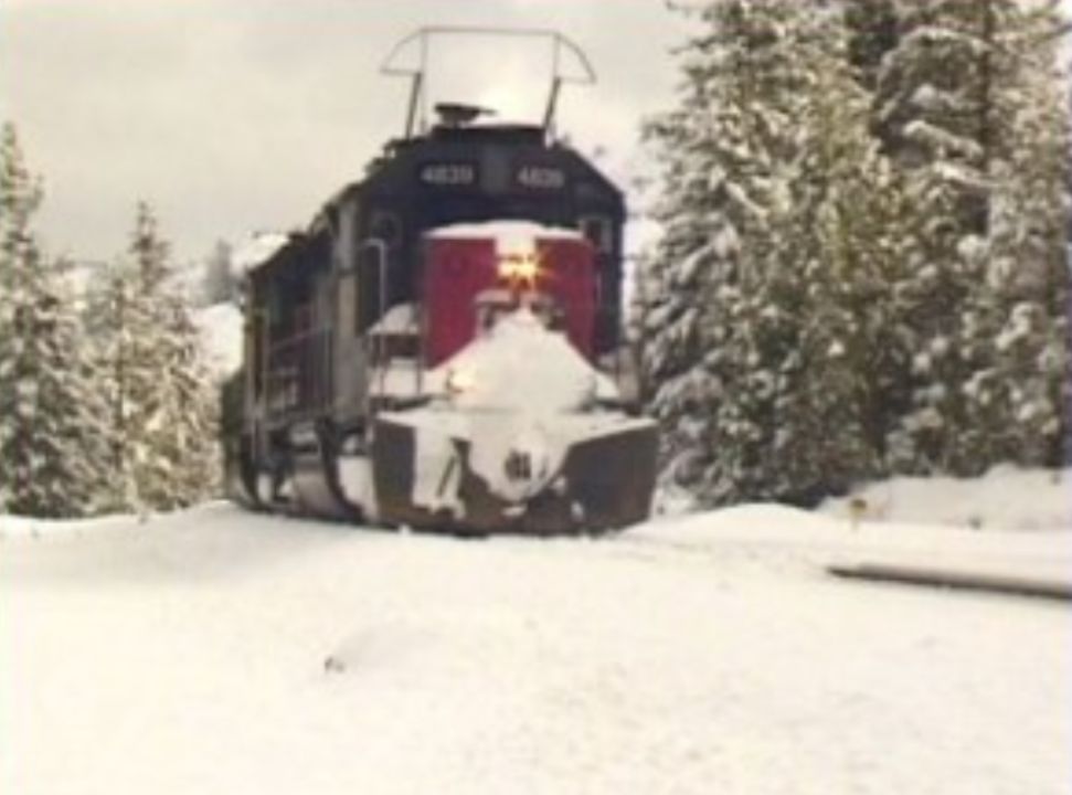 Dick Shorrock is a Snow Service Conductor, hired on in 1979. He is the Conductor in the cab with Bill Toland. They are seen, working as a team. Terry Bell, the Brakeman rides in the flanger. Our train encounters ‘white out’ conditions. It has to stop for evaluation of the situation. This is full on snow clearing in a winter storm.