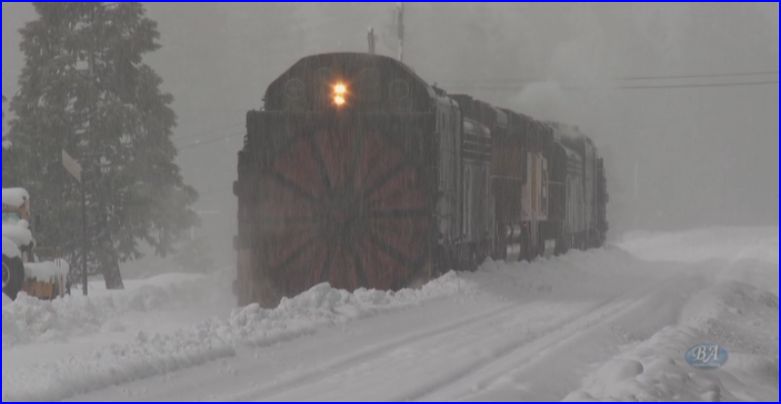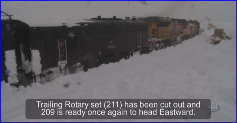 Snow Service Engineer Mark Fagley describes his experience with the avalanche. Still photos reveal the sheer force of the snow upon the marooned train. That train is buried in the snow. Yes, it is time for the rotaries.