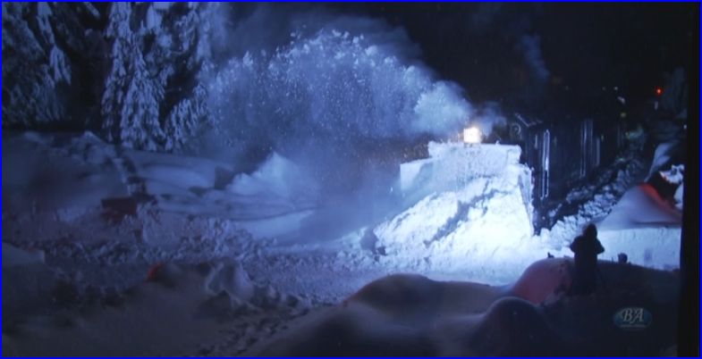 Back to the Flanger Train. Talk about mountains of snow. Onboard that train, the crew discusses calling for the Rotaries….WHOA!……………. AVALANCHE!!!!
