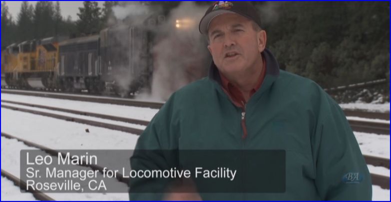 March 24, 2011. At Roseville, the Director Locomotive Facility, Dennis Magures informs us that Soda Springs has 200 inches of snow on the ground. A new storm is bringing another 4 to 6 feet of snow there. Also, wind speeds of 70 mph are expected. Notice, Mr. Magures is outdoors, in the weather, complete with a hardhat. Filmed in the moment and on site.