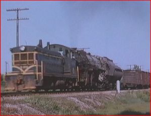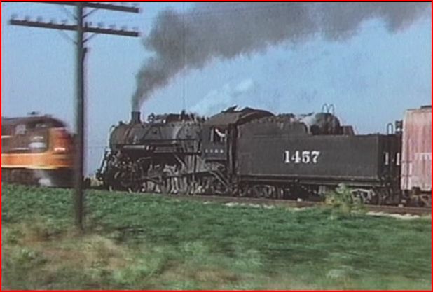 Illinois Central also provides much fine action. Classic trains around Kankakee. The 1457 is paced from Route 45. An occasional first generation diesel will sneak into a few scenes, in random points of the show Just like real life, back in those days. Freeport is another ICRR location, with the yard and facilities in the background.