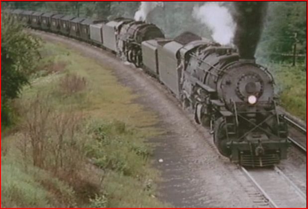 Norfolk and Western has some double headers in West Virginia. See some Y class pulling some heavy coal trains, with a Y6 pusher engine! There are 0-8-0’s that have the strong N&W appearance. Rare 4-8-2 streamlined, K-class steamers, that closely resemble the famous bigger J-class power. Many trains are viewed on the N&W. Passenger action too. This busy and plentiful N&W chapter is a highlight of the show.