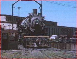 Northern Pacific. Heavy Mikado at a roundhouse, with turntable spin. Little bit more of NP.