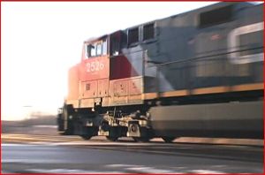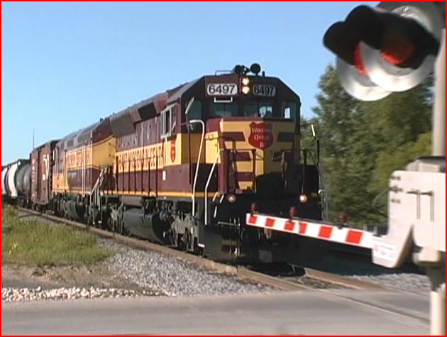 A Soo Line and CP Rail pair, also pass the camera. Amtrak as well. Norfolk Southern, Union Pacific, a patched RF&P , Conrail and CP Rail are among the foreign road engines.