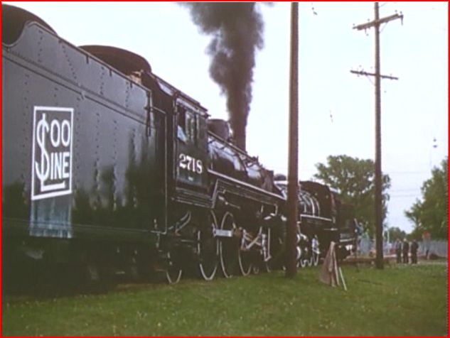 Soo Line 2718 shoves the General Pershing into a museum exhibit place at Green Bay.