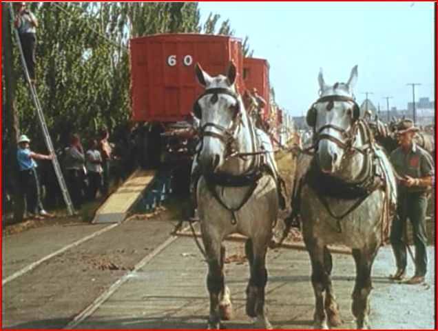 The Circus Train ends up being unloaded by 2 horsepower teams! A fun feature of the show. A bit of the parade is included in front of the C&NW station. This is fun!