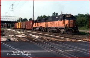 Though the familiar town names abound, the backgrounds are different than later years. Things just weren’t as built up. The above shot of the Fairbanks Morse diesels at Argo, on Indiana Harbor Belt.