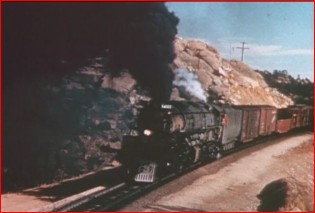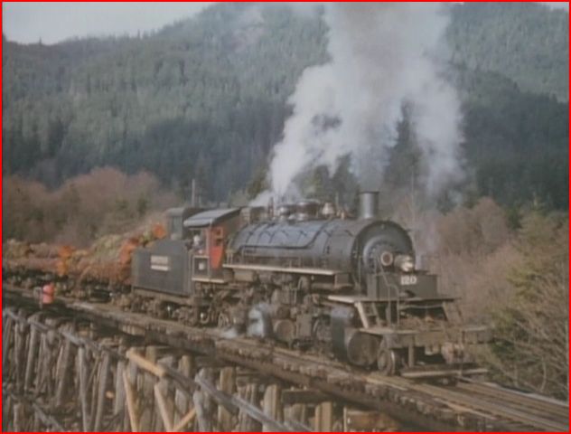 Logging railroads are represented by Rayonier. Engine #38, a 2-6-6-2, is dramatically filmed on the logging line. Grays Harbor, Washington area and Camp 14. Engine 120 is memorable, as it crosses an old wooden trestle.
