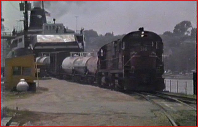 The show begins at Norwood Yard on GBW. An Alco RS3 makes up a boat train.
