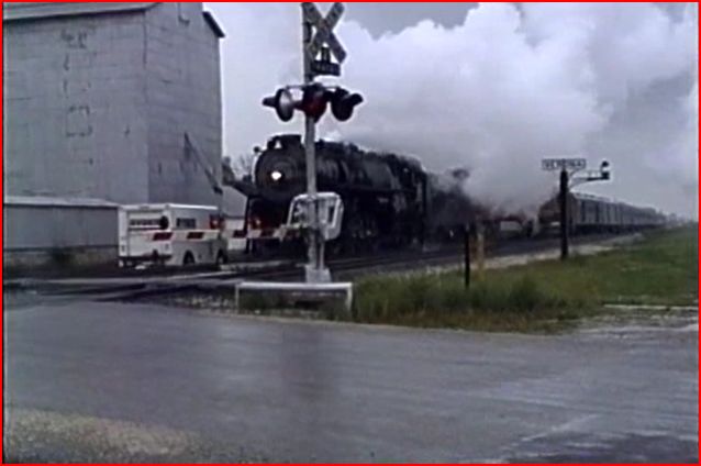 At Steator, ding, ding, ding. here comes the train. At least 261 is leading. Freights are interspersed within the show. The scene above, also appears in Santa Fe in Illinois Part 3.