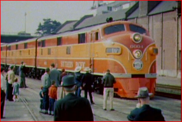 Classic- Southern Pacific Daylight train. The brand new E7 diesels are on a preview run!