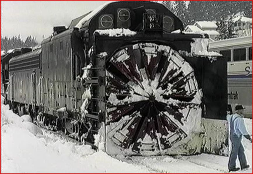 Along with mountains of ‘Sierra Cement”, snow removal is important to keep the line open.