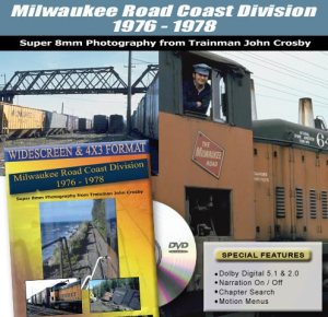Milwaukee Road Coast Division 1976 – 1978. A short, well done program that makes maximum usage of a limited supply of film footage. The Slideshow adds value to this new release. Script, narration and production are strong points. In fact, the high quality production levels elevate the overall rating. Organized and interesting look at the late era Milwaukee Road. Keep in mind, the running time is a brief 22 minutes of film.