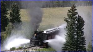 Cumbres & Toltec #488 and 484. Exterior shots of these narrow gauge trains, in the summer. Film and audio are excellent. Not always the smoothest panning here, though camera is on a tripod. Chama to Cumbres Station.