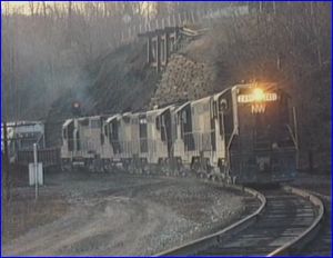 Western Maryland “End Of An Era”. This a vintage showcase for Emery Gulash. An interesting array of, first and second generation locomotives. Scenic Appalachian Mountains. Some dismal weather on one day. A solid audio track of EMD power.