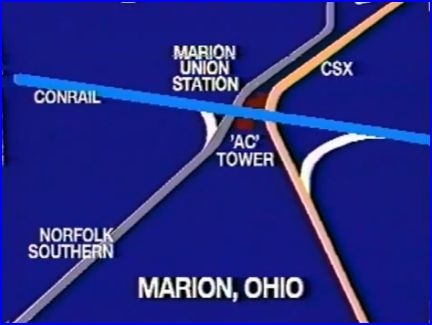 Clear Block has a unique take on the landmark tower and hotspot at Marion, ohio. The railroad structures there are prominently featured. AC Tower is the headliner of this show. Marion Union Station has been restored, and sits right at the main junction. That station is thoroughly discussed and viewed. Detailed, illustrated history of all the former railroad buildings at Marion is an unexpected historical lesson. So are the model trains, shown to give a vintage perspective.