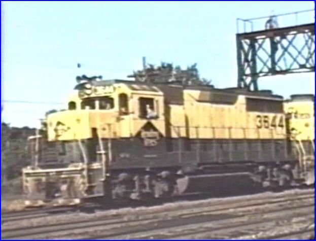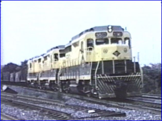 The GP30 units are in abundance. At Hershey, Pennsylvania. Alco C424 trails. A highlight sequence with various trains here. Yes, the Hershey factory is in the background.