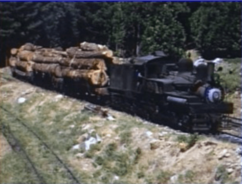 Geared locomotives operate in the tall pines. Additional scenes display steam powered donkeys and their application. The Empire City Narrow Gauge is an incline, feeder line to the railroad. Ultimately, the steam gets replaced by diesel, much of the railroad replaced by trucks. Here is a chance to look back in time…..
