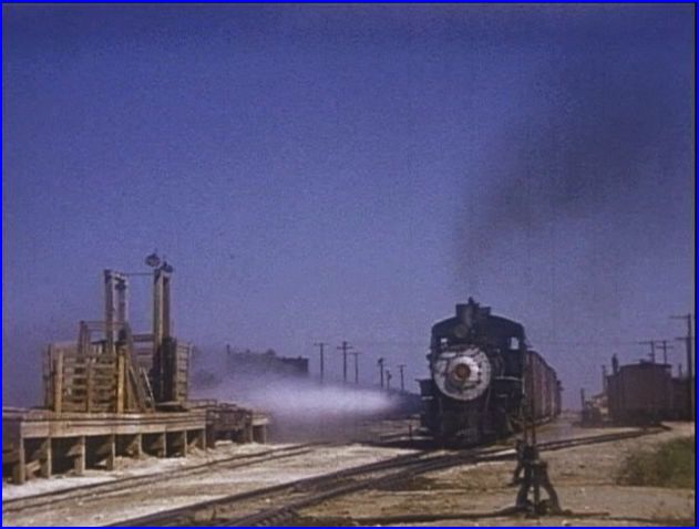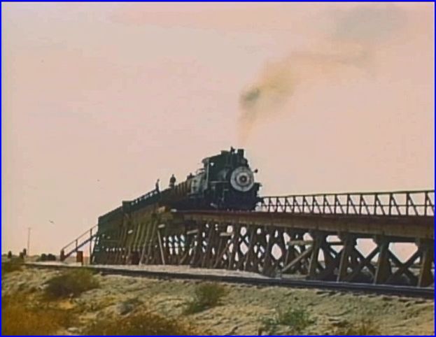 sp9 borax otto perryThis show has had a 2007 digital remaster. Otto Perry was a famous photographer and filmed steam era railroads. His library contains over 20,000 photographs. Above, a train loaded with Borax, that will be transferred to standard gauge Southern Pacific Lines.