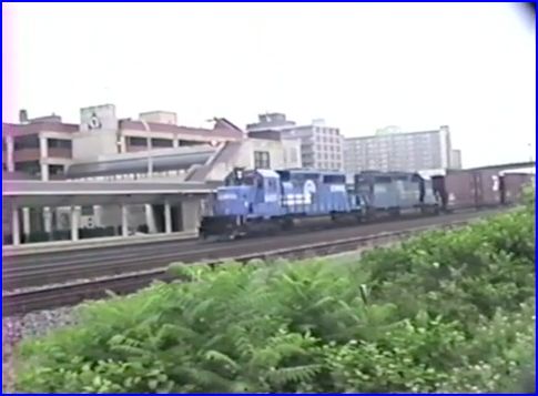 Amateur shot video footage. Shaky camerawork is omnipresent. Below average composition skills. The framing, lighting and adaptability to getting good shots, are areas for improvement. Zoomwork is not steady and unsure overall. Obstructions and wet weather are very problematic. All of this, to see mostly SD40 types on cabooseless moves.
