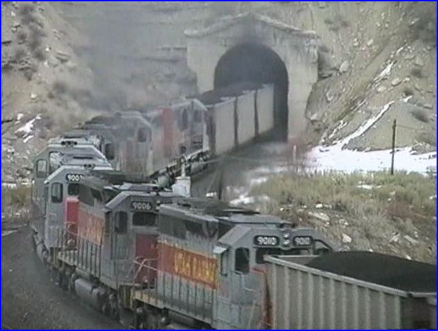 Rio Grande helpers on a light engine move at Thistle tunnels.