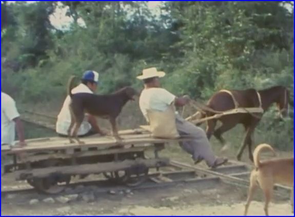 Our first destination is to experience various horse drawn lines. While a few scenes would have been sufficient, to resolve curiosity, major screentime is spent on the horse lines. The program quickly falls into chasing and riding this form of rail travel. The wooden flats are used by families to haul themselves and whatever else may be transported by this method. Wild turkeys or cattle can temporarily block the track. This footage is something you will only need to see one time.