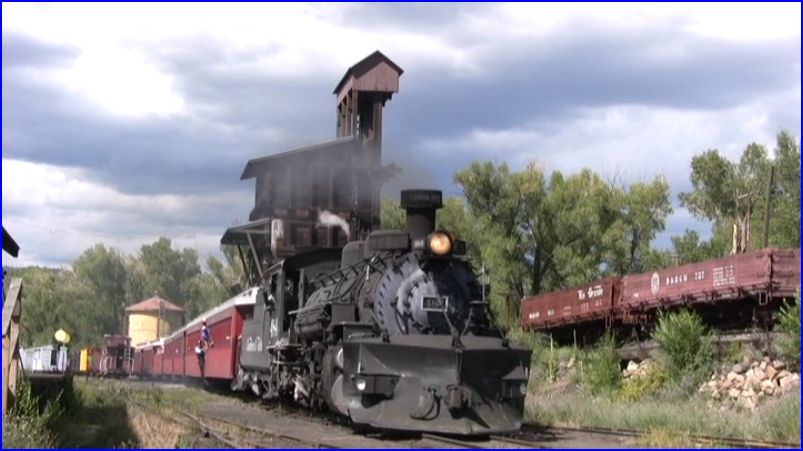 Chama is the home of C&T. Engine 484 passes the coaling tower.