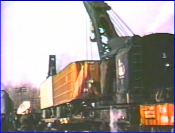 Poor condition track is evident. Some trains rock violently and you will see a number of derailment sites. A pair of steam cranes are rerailing piggyback cars.
