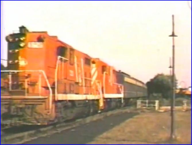 Red Baron scheme is barely evident in this volume. This pair of Geeps are pushing this passenger move at an unknown location.