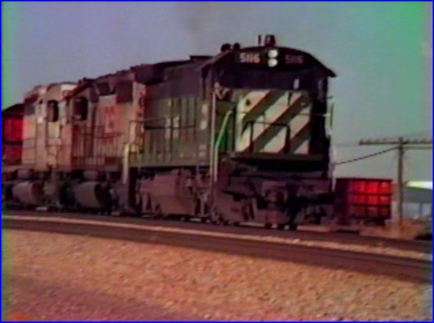 Disc 1 contains Burlington Northern circa 1987 to 1989. Original video by George Redmond. The videographer did a fine job of shooting the BN. Imagery and composition are nicely done. Above, BN 5116 is a GE C30-7.