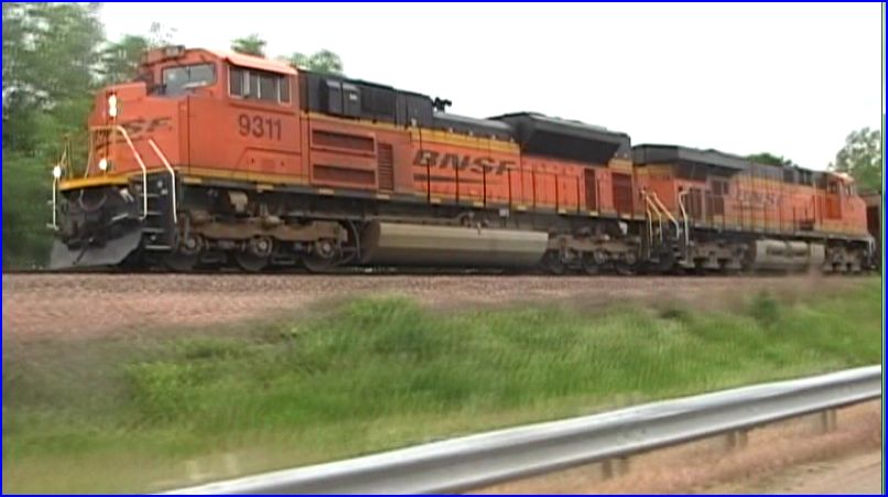 BNSF 9311 SD70ACe. Mary has an outstanding pacing sequence of this train. Check her guitar playing in the background.