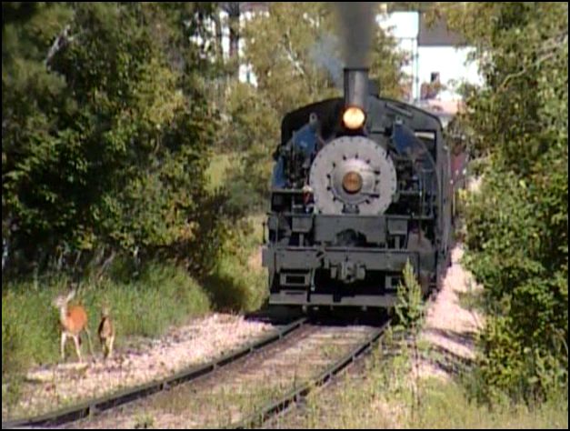 Black Hills Central encounters a mother deer and doe.A variety of sizes and classes are here. Diminutive narrow gauge. Large Northerns from UP and Milwaukee Road. Passenger power. Consolidations, Mikados and Shays. Strange looking Chinese steam, on US rails. Articulated, with UP, N&W. Saddle tanker and even a replica of an early 440 steamer.