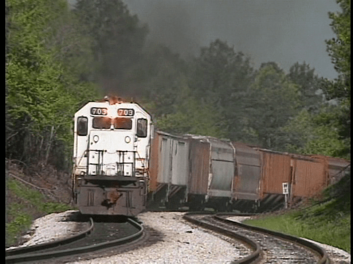 Oauchita Mountains. A train is chased across the mountain grades. At Hatfield, AK. Train 2 heads back.