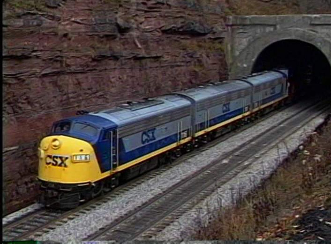 The CSX F unit set on a 1991 special at Sand Patch Tunnel.