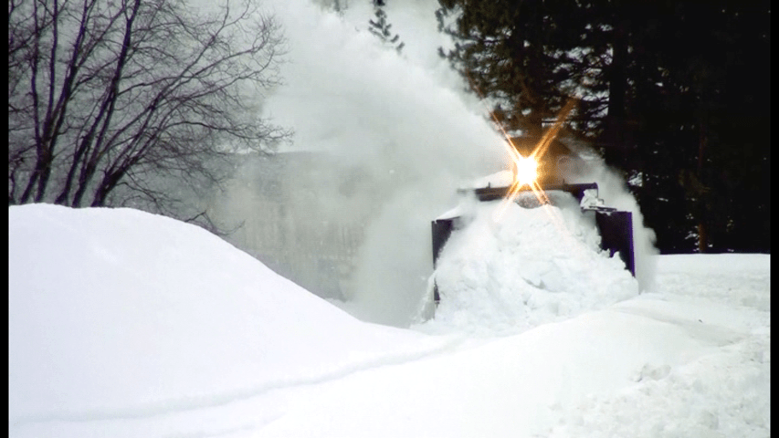 Now, the story is redirected. The massive snowfall. Following the Rotary, as it works hard, to clear the mainline through Donner Pass. The Snow Service operation works, day and night.