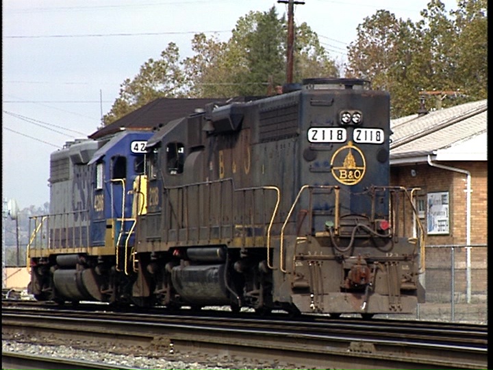 Russell Yard in 1995. GP38 B&O 2118 waits near the former depot. Tower is visible, as well.
