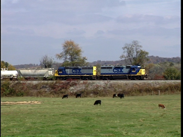 KC Junction offers a Tower scene. CSX 8454 and 8262 pull a freight past a Steam Excursion. No frontal shot of the Steam Engine. Additional CSX train action with a C40-8. A local for Maysville.
