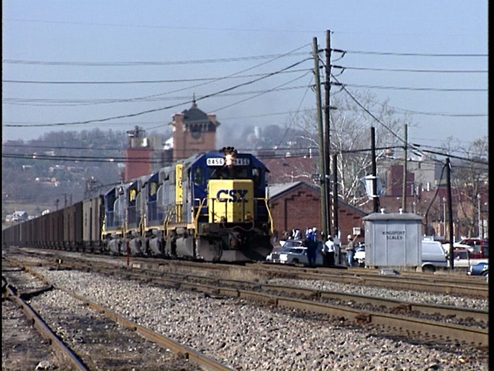 Kingsport Tennessee has a Coal train creeping by the station. 8456 leads. Why the crowd? What is the huge steam engine doing there? A BIG hint at the end of this show…
