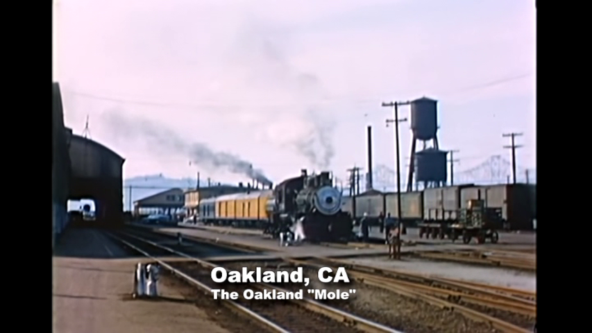 Switching 0-6-0 at the Oakland Mole, for the picture. Ferries, bridge, Streetcars and trains. Interesting subject matter. One that most have never witnessed.