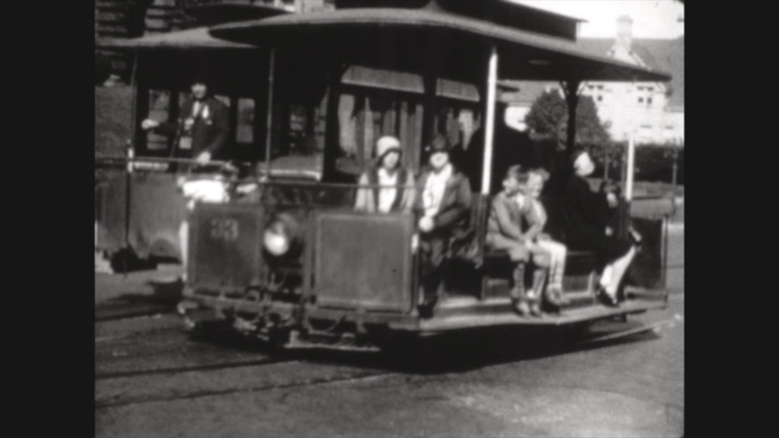 Pacific Avenue Cable car ride in 1929. Black and white. You are there! Voices, footsteps, vehicles. A serious upgrade over anything, previously done.
