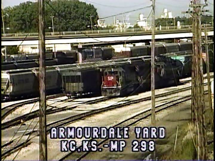 SP runs 68 miles to Topeka via trackage rights. This section is on Union Pacific. Trains are seen in the vicinity of the yard. Many freight cars are viewed. Traffic is heavy in both directions. Union Pacific is busy, as well. This is their rails. UP has a yard, next to the Southern Pacific one.